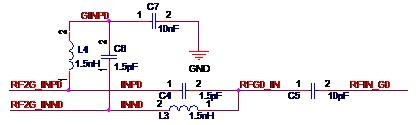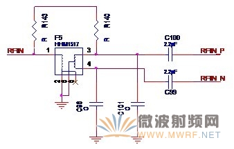 其實大家也一定想到了,收發器接收信號和收發器發送信號差不多就是互為逆過程,因此電路的結構也差不多是相反的。沒錯,看了下面的實際電路圖就知道了。 先來介紹使用平衡器的方案。在某實際案例中,采用了如圖2-8所示的平衡器電路。單端信號RF_IN經過平衡器F5后得到差分的射頻信號RFIN_P和RFIN_N。