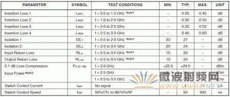 有一個比較奇怪的現象時我們很少看到在Datasheet中提到切換速度這樣的參數。在絕大多數設計中,幾乎無一例外的使用了NEC公司的uPG2179作為切換芯片(Switch),其典型參數如圖5-2 所示。
