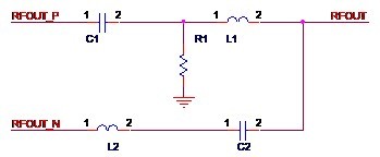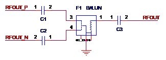 方法一,使用平衡器。原本相位相差180°的差分信號經過平衡器(Balun,俗稱巴倫),就可以得到合二為一的單端射頻信號。如圖2-5所示,圖中的F1就是一個平衡器,差分信號RFOUT_P和RFOUT_N經過F1得到單端信號RF_OUT。