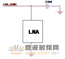 我為什么要把電源與增益控制放在同一節呢?因為低噪聲放大器的增益是依靠改變供電電壓來實現的,這樣就很容易理解了。學過模擬電路的都會知道,三極管放大電路的放大倍數和供電電壓有密切關系,對于芯片說也同樣如此。圖4-4給出了常見的增益控制的電路形式。圖中的LNA_GAIN既是來自無線收發器(Radio Transceiver)增益控制信號,又是低噪聲放大器的供電電源,C104是濾波電容,顯而易見,低噪聲放大器的增益直接與LNA_GAIN的電壓有關。